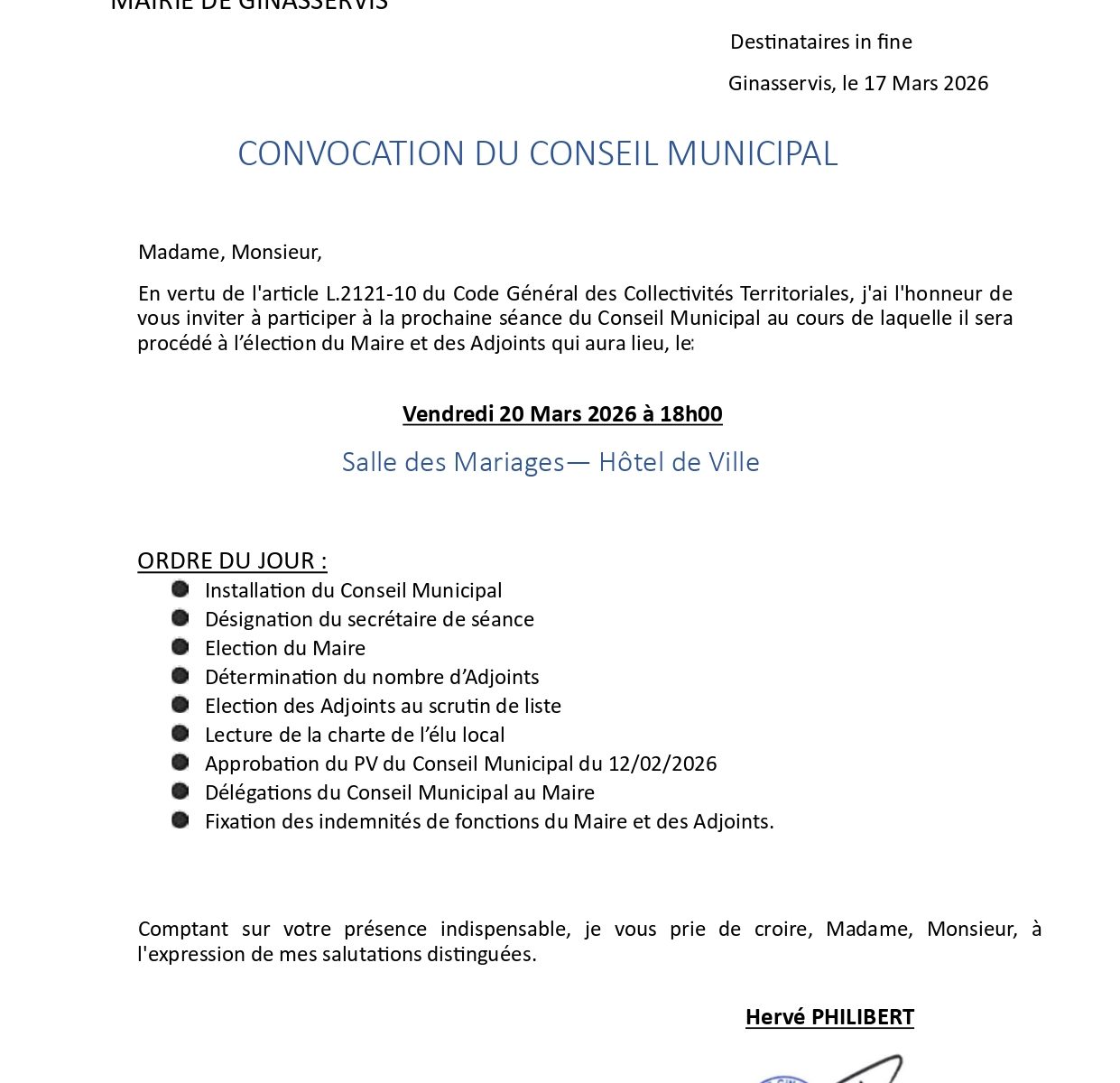 • Le conseil municipal 2020-2026